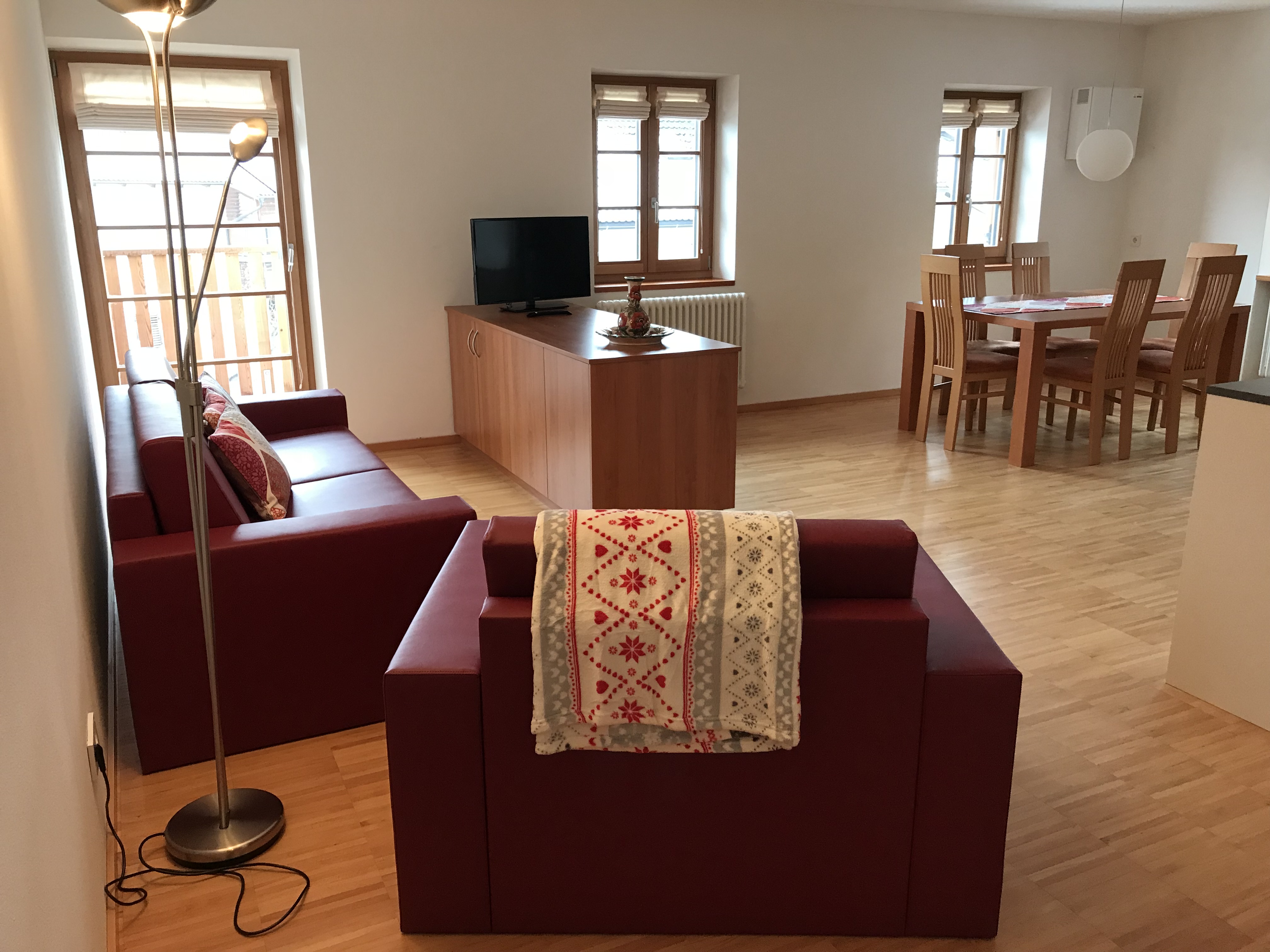 2 getrennte Doppelbettzimmer sowie eine im Wohnraum gelegene Schlafcouch stehen unseren Gästen zur Verfügung. Die Wohnung hat einen kleinen Balkon und ist überall mit einem Holzboden ausgestattet. Weiters verfügt die Wohnung über einen Safe, eine Wohnküche, Kaffeemaschine, Geschirrspülmaschine, Waschmaschine und einen Elektroherd. Das Geschirr sowie Bettwäsche und Handtücher stehen Ihnen frei zur Verfügung. Des weiteren haben sie eine Dusche/Bad mit Bidet, einen TV sowie WLAN und einen herrlichen Panoramablick. Zudem verfügt jede Wohnung über einen abschließbaren Abstellraum für Fahrräder, Ski usw.